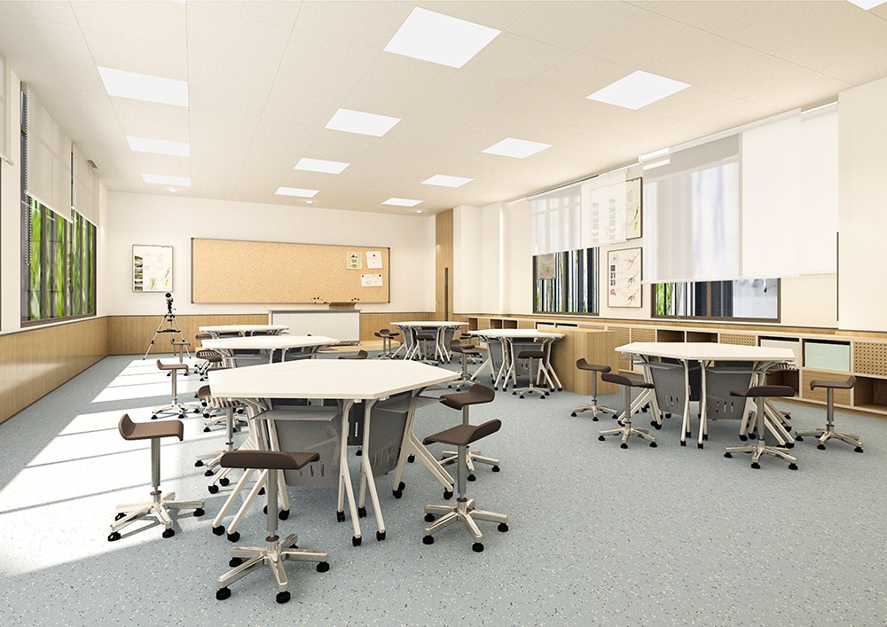 設計理念:將現(xiàn)代社會的教育概念、形態(tài)和特征和科學的規(guī)劃融入設計中,根據(jù)學校未來發(fā)展與師生的需求充分發(fā)揮空間想象以獨特的材料選擇、合理的構(gòu)造、新穎的色彩,打造一個體現(xiàn)學校凝聚力、精神、文化底蘊的空間。為廣科附屬第一學校學子創(chuàng)造出充滿書香、溫馨、創(chuàng)新的學習環(huán)境。在設計中融入時代元素,體現(xiàn)新的綜全觀念、人文觀念、時空觀念、系統(tǒng)觀念、信息觀念、高科技觀念等。