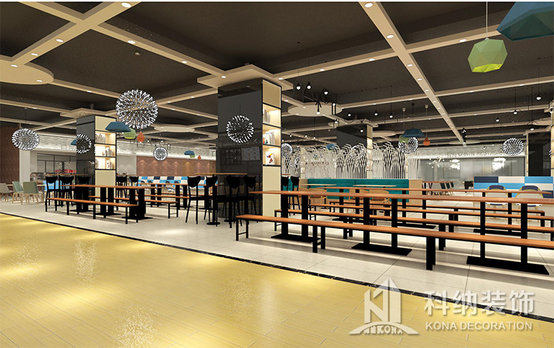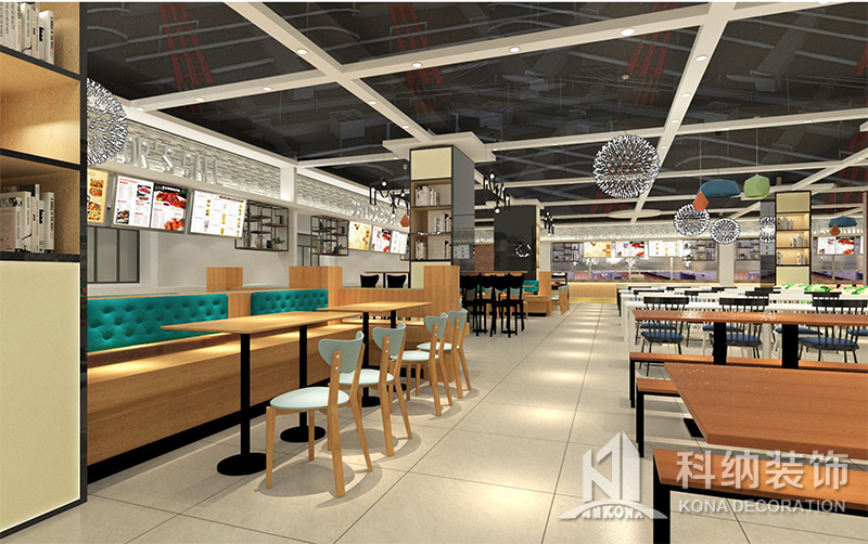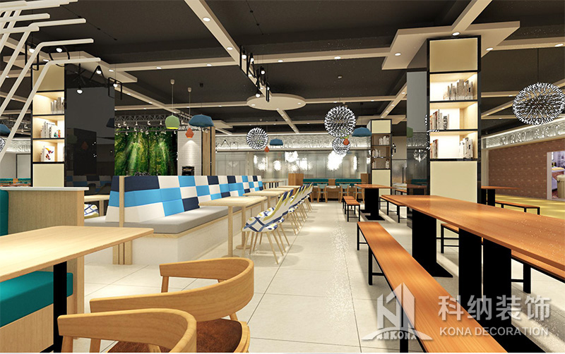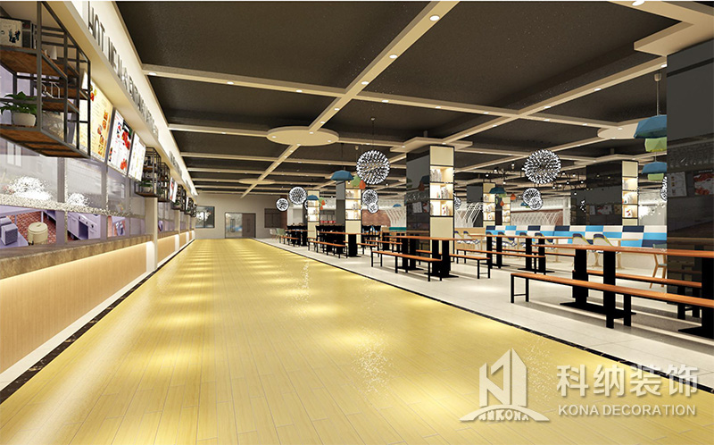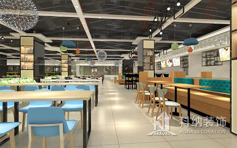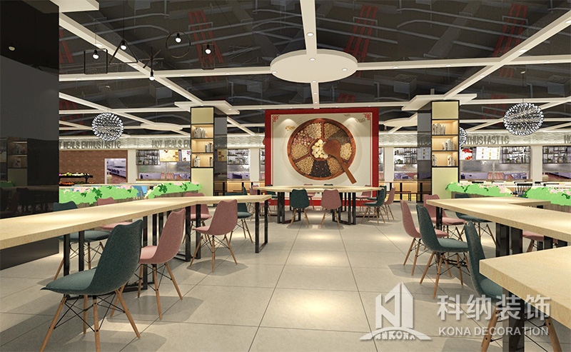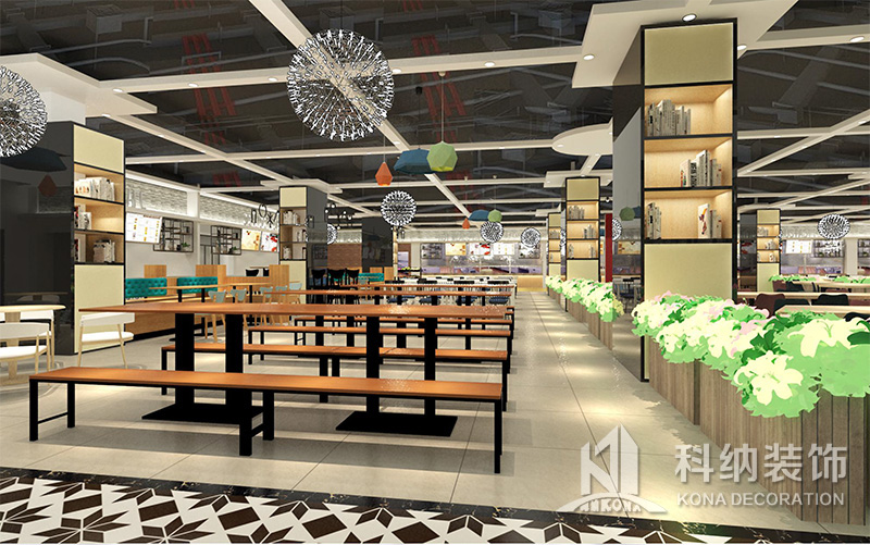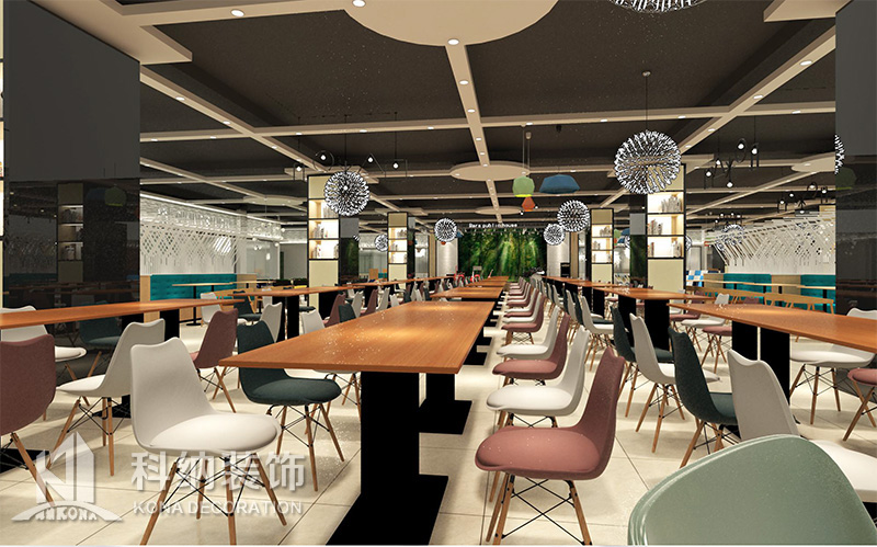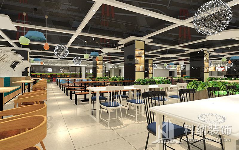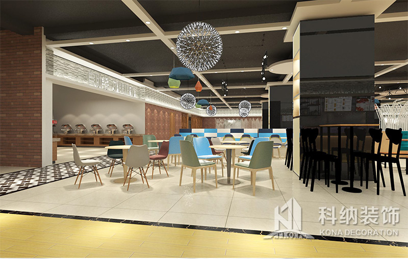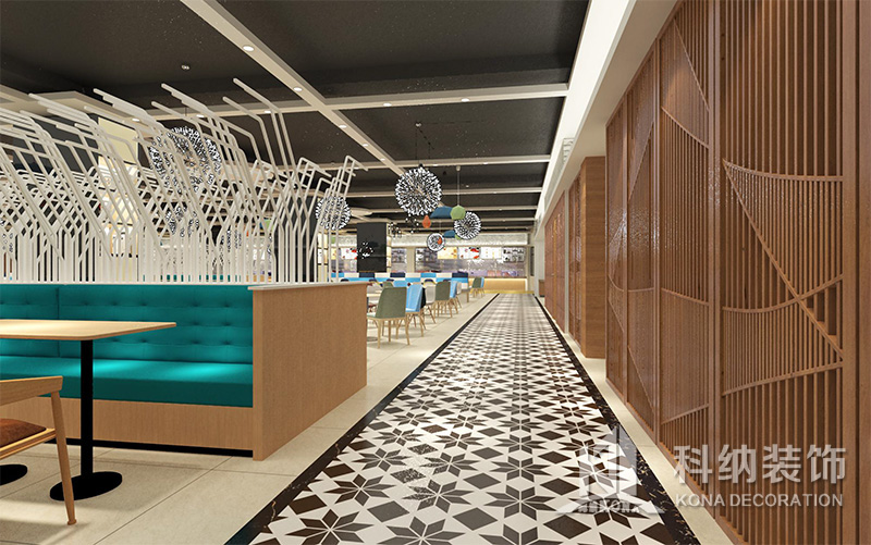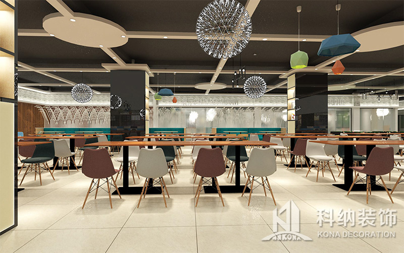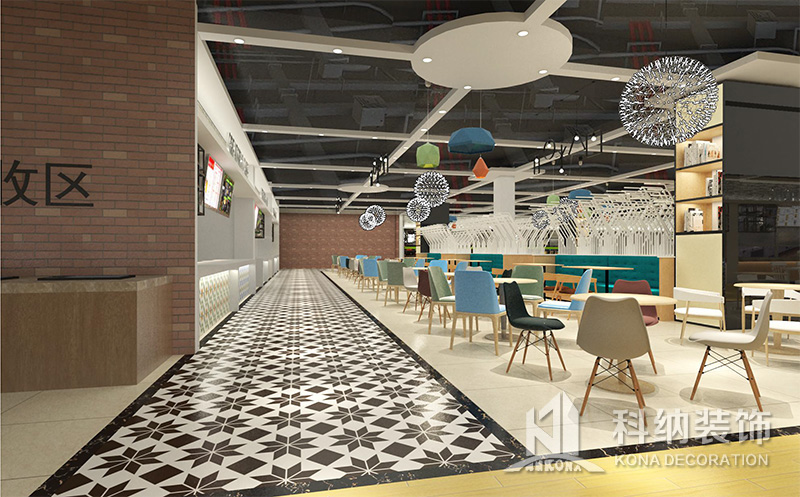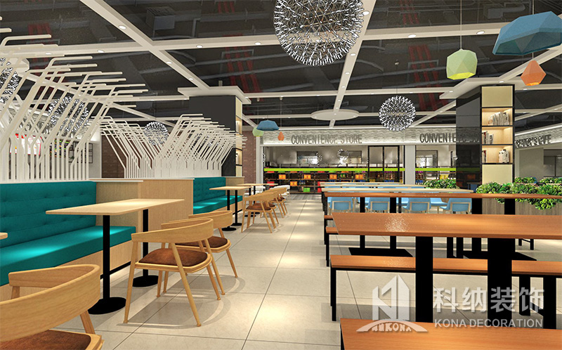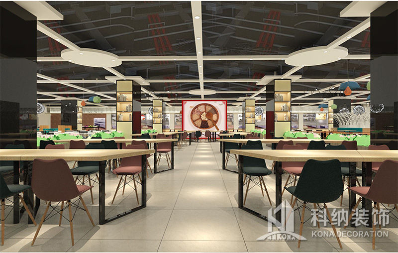 設(shè)計(jì)理念:該項(xiàng)目為嶺南職業(yè)學(xué)院清遠(yuǎn)校區(qū)休閑餐廳,一樓可同時(shí)容納723人數(shù),二樓513人。設(shè)置有廚房、就餐區(qū)、品牌門店、多功能活動(dòng)大廳、休閑區(qū)、自助餐區(qū)、接待包房等多個(gè)區(qū)域。設(shè)計(jì)師通過可移動(dòng)屏風(fēng)隔斷墻實(shí)現(xiàn)包廂可變性,一個(gè)大包廂或2-3個(gè)小包廂之間的變換,可根據(jù)用餐人數(shù)決定空間的大小。餐廳不僅僅是用餐的功能,更是一個(gè)社交與體驗(yàn)的場所,設(shè)計(jì)師在空間中設(shè)定了多種用餐場景,同時(shí)通過區(qū)域的劃分搭配不同座位的組合方式,從2人位到12人位,滿足了不同場景下的用餐需求。中心區(qū)域利用綠植劃分出來,使空間彼此分隔又能保持空間的通透。視線透過折線陣列的間隙,讓隔斷若實(shí)若虛。包房內(nèi)是傳統(tǒng)的中式宴請圓桌,和依舊灰色調(diào)為主的空間氛圍。墻面的裝飾畫,沒有濃墨重彩的痕跡,只是寥寥幾筆,將所有的刻意掩埋。