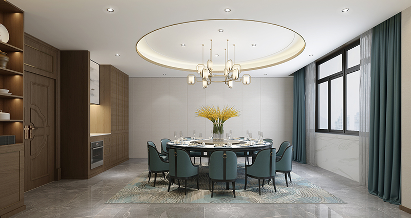 設(shè)計理念:該裝修設(shè)計項目是橘井泉香藥業(yè)集團(tuán)辦公樓內(nèi)的餐廳空間,包括一層的員工餐廳和三層的餐廳包間。設(shè)計一樓的員工餐廳主要體現(xiàn)干凈整潔明亮的特點(diǎn)。大開敞的就餐空間采光明亮,簡潔而鮮明的內(nèi)飾與環(huán)境自然融為一體。讓人在獲得無盡放松心情的同時,感受古與今的文化碰撞和獨(dú)樹一幟的品牌力量。包間的色調(diào)以灰白色、古銅色為主打色調(diào),咖色原木色點(diǎn)綴,整個空間溫雅而舒適, 沉穩(wěn)而大氣。
