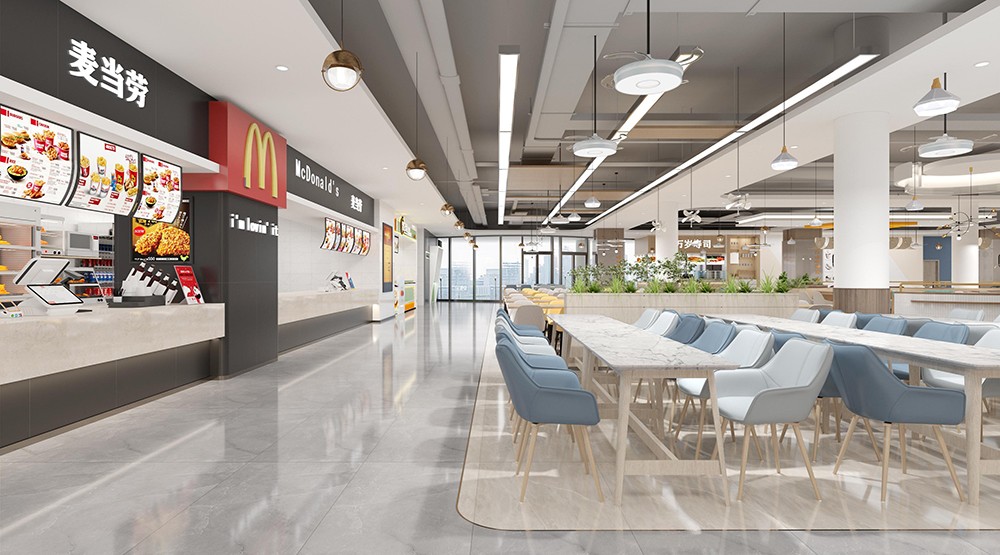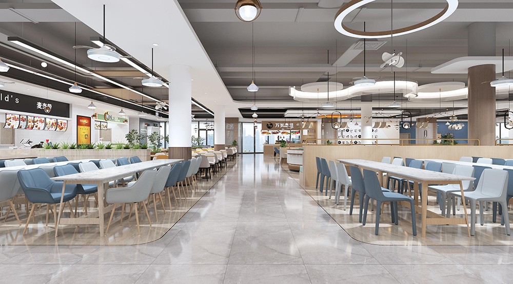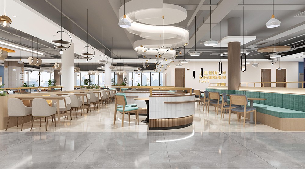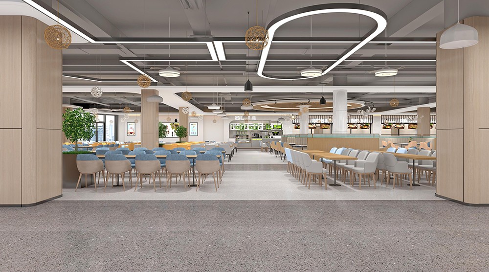 設計理念:新鮮出爐的餐飲空間來了,突破傳統(tǒng)食堂形式,創(chuàng)造出開放、通透的餐飲環(huán)境,滿足師生們的不同需求。買餐、分流、人流動線清晰,在保證大流量快速用餐的同時塑造小空間氛圍,提供休閑,交流的空間,整體空間干凈利落,簡潔明快?,F(xiàn)代化設計充分體現(xiàn)空間尺度,優(yōu)化食堂環(huán)境品質(zhì),營造健康、安全、舒適的就餐環(huán)境。這樣的食堂環(huán)境,是師生向往的,外人羨慕的。