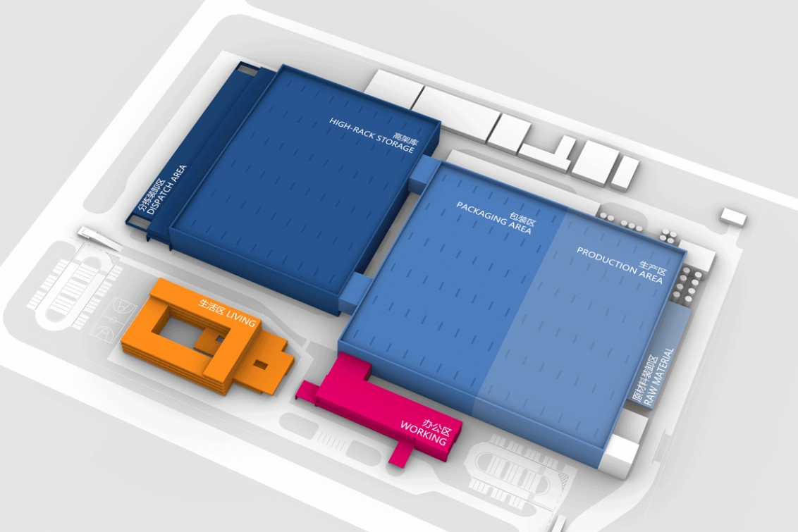 設(shè)計(jì)理念:維他奶東莞工廠以實(shí)用性、經(jīng)濟(jì)性和流線組織為設(shè)計(jì)關(guān)鍵驅(qū)動因素,同時(shí)考慮工藝需求和工廠使用體驗(yàn),打造出一座專業(yè)且現(xiàn)代化的工廠。除了考慮工藝需求外,我們還注重工廠的使用體驗(yàn)。維他奶東莞總工廠占地約150畝,能夠同時(shí)滿足生產(chǎn)、辦公及員工宿舍等基本功能。這樣“三件套”的功能配置,在東莞的工廠中不算特別,但區(qū)別于其他工廠只為生產(chǎn)的糟糕環(huán)境,我們在設(shè)計(jì)時(shí)將廠前區(qū)、生活區(qū)、生產(chǎn)區(qū)通過周界系統(tǒng)實(shí)現(xiàn)分區(qū)管理、增強(qiáng)體驗(yàn)度,讓真正的打工人有質(zhì)量的工作與生活。